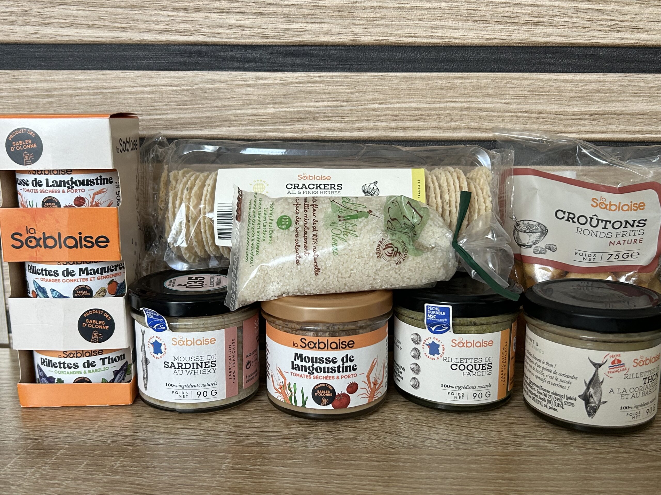 Rillettes, mousses, salicornes, crackers… une sélection issue des conserveries sablaises et des bords de mer vendéens.